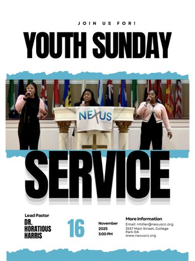 Get ready for an exciting and powerful Youth Sunday at Nexus Church! Join us as our young people lead the way in worship, praise, and purpose. This is their time to shine and show how God is moving through the next generation. November 16, 2025 at 3 pm. Come support our youth, celebrate their gifts, and experience a service filled with energy, faith, and fresh fire!